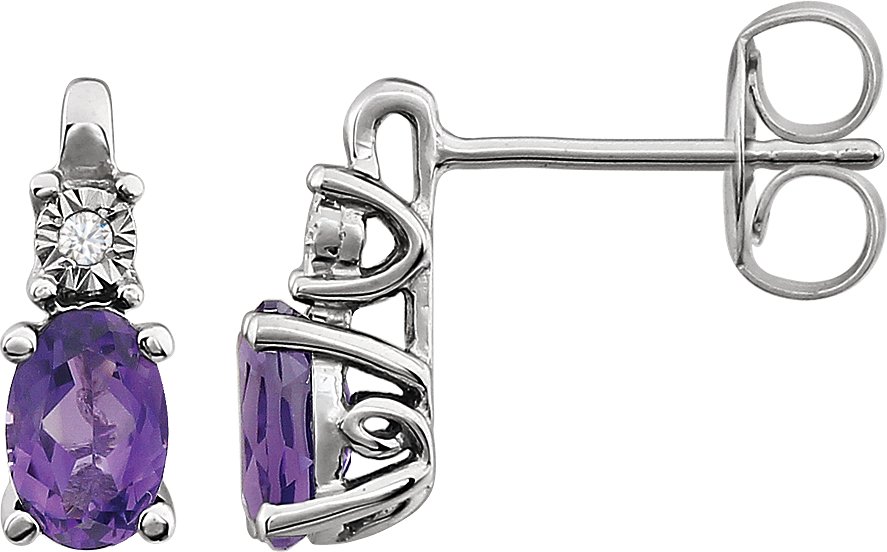 Description: Genuine Amethyst And .02Ctw Diamond Earrings With Backs