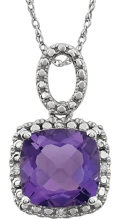 Description: Genuine Amethyst And .03Ctw Diamond 18 Inch Necklace