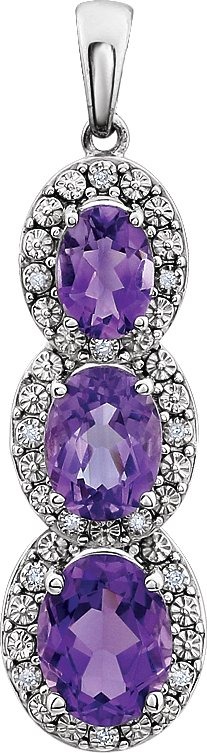 Description: Amethyst And .04Ctw Diamond 3 Stone Pendant