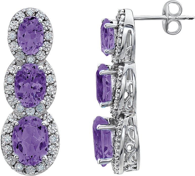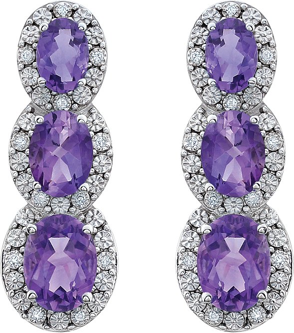 14K White Amethyst & .07 CTW Diamond 3 Stone Earrings