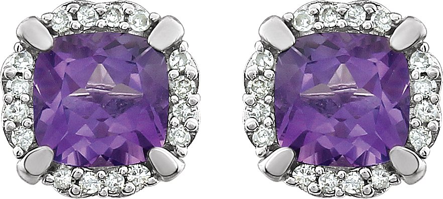 14K White Amethyst & 1/10 CTW Diamond Earrings
