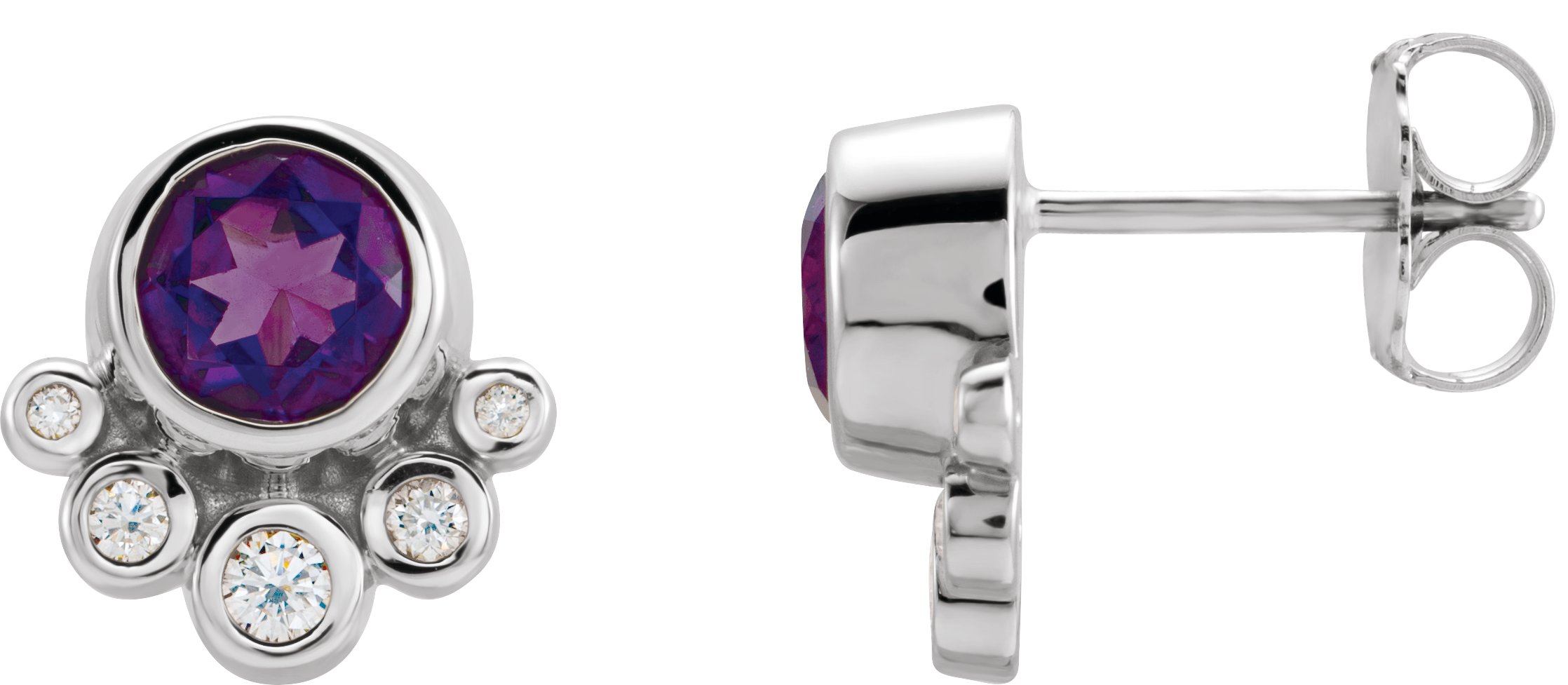 Description: Genuine Amethyst And 1/8 Ctw Diamond Earrings