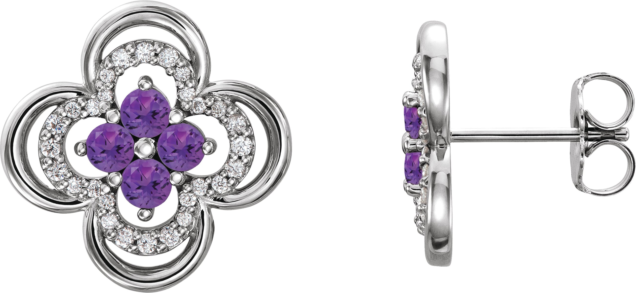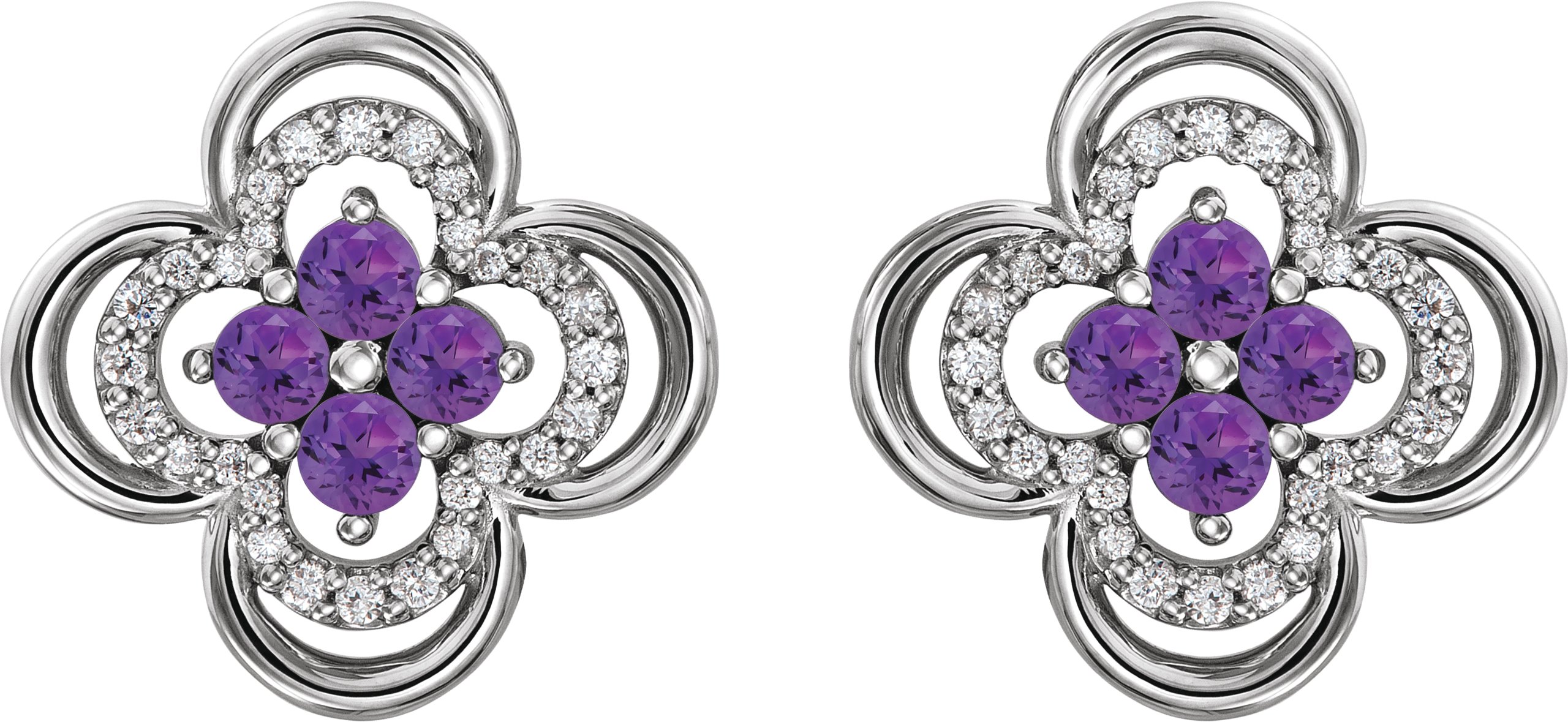 14K White Amethyst & 1/5 CTW Diamond Clover Earrings