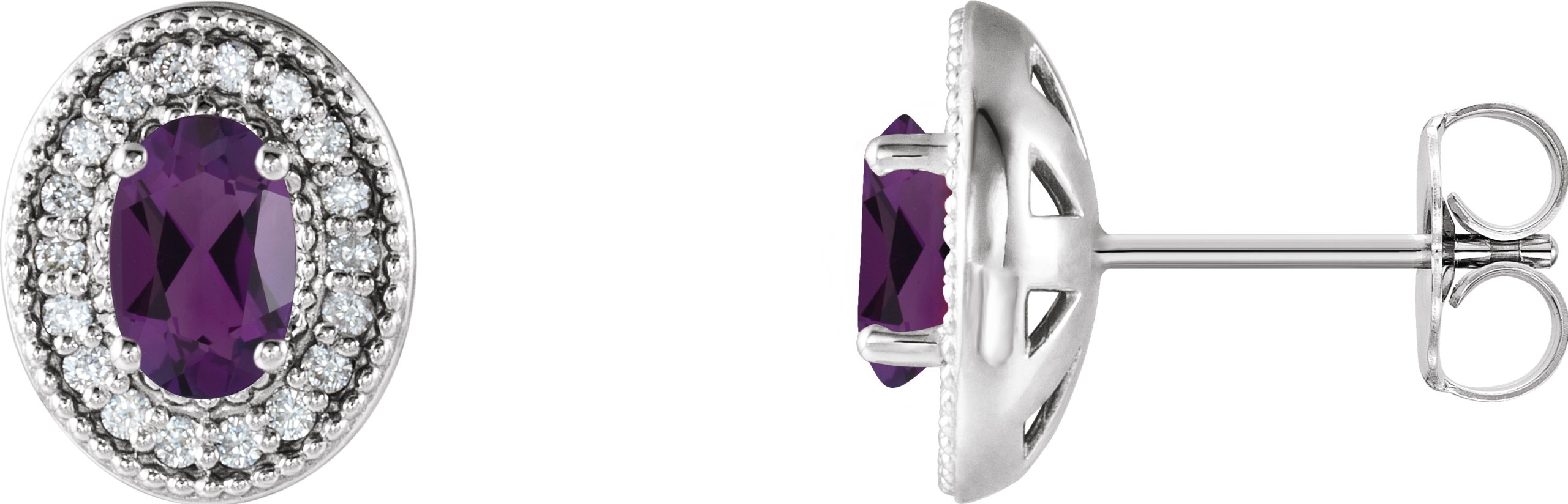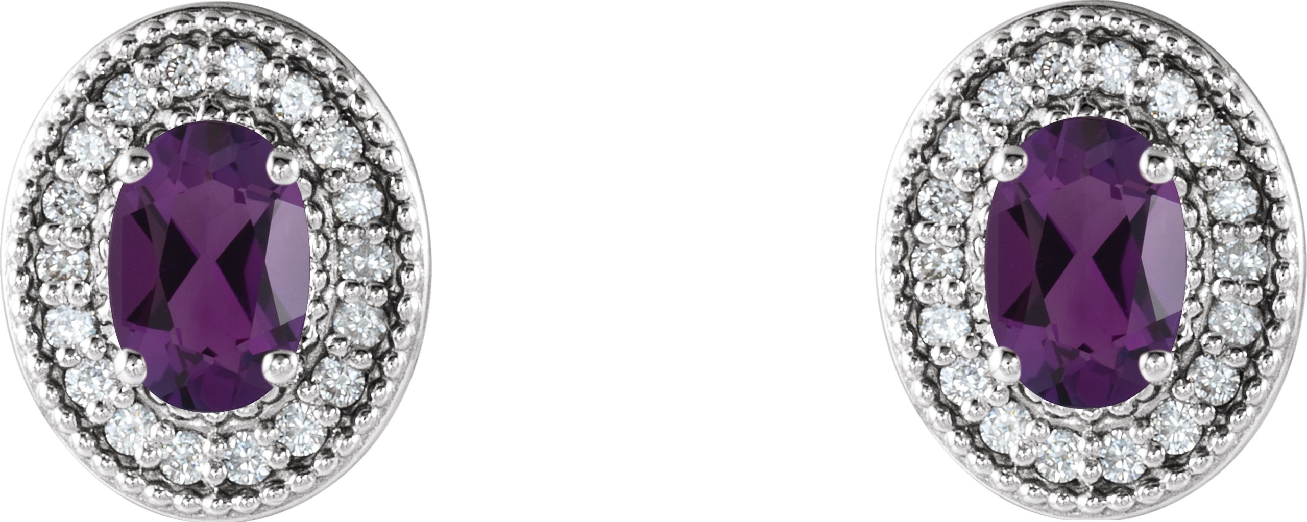 Description: Genuine Amethyst And 1/5 Ctw Diamond Earrings With Backs