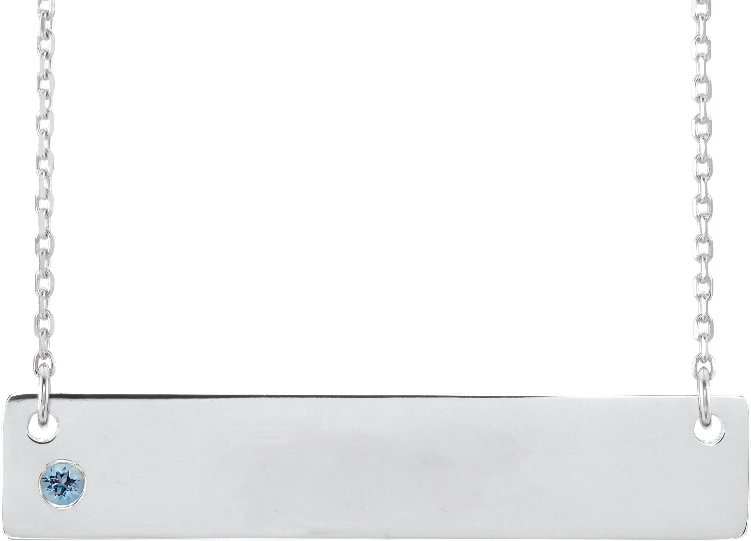14K White Aquamarine Family Bar 16 18 inch Necklace