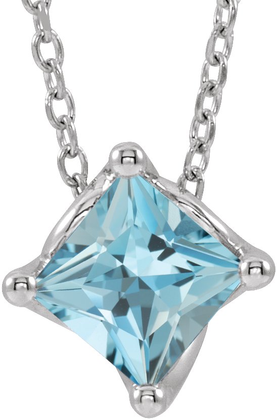 14K White Aquamarine Solitaire 16 18" Necklace Ref. 15609216
