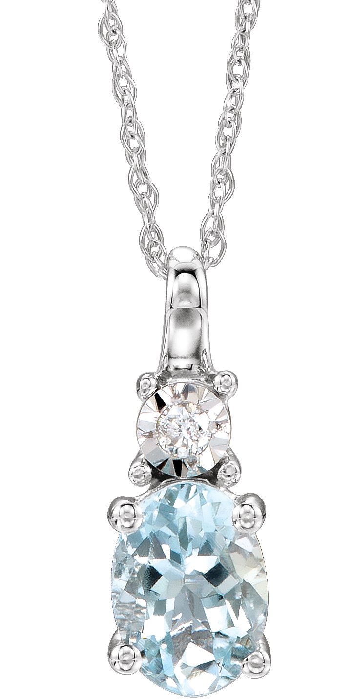 Description: Genuine Aquamarine And .02 Ctw Diamond Necklace