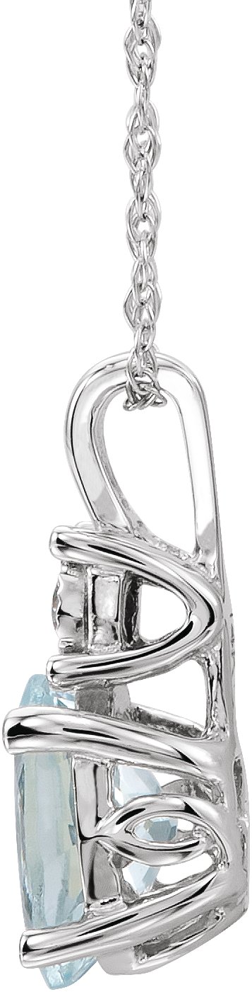 14K White Aquamarine & .02 CTW Diamond 18 inch Necklace