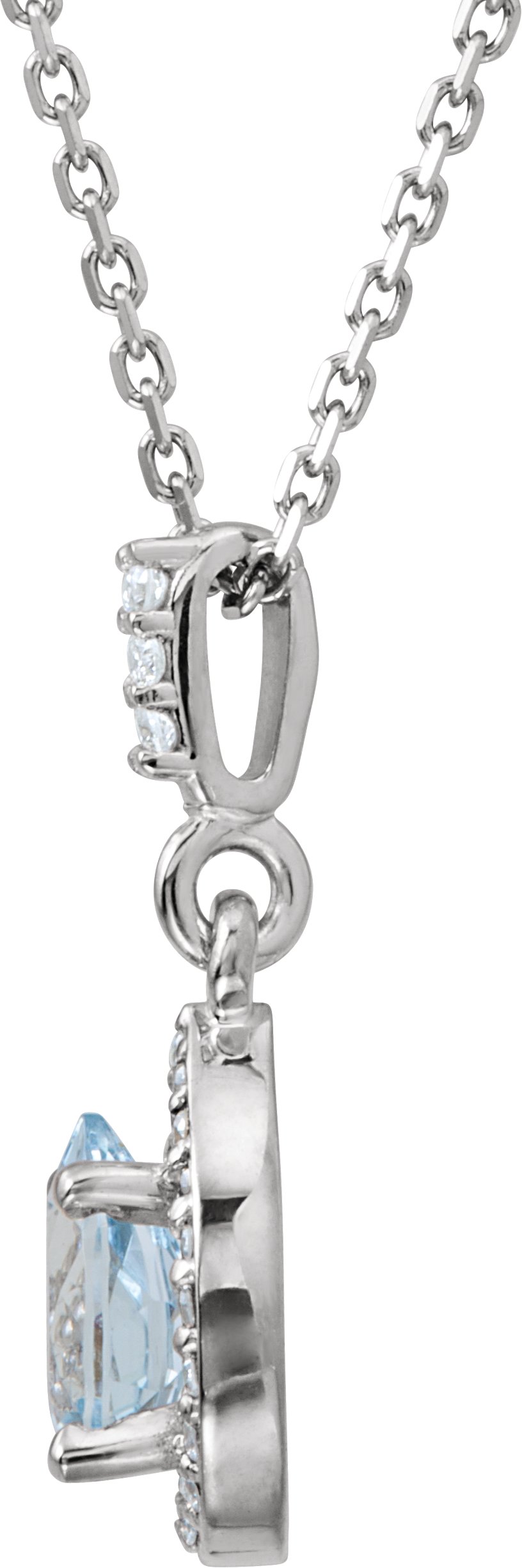 14K White Aquamarine and .07 CTW Diamond 18 inch Necklace
