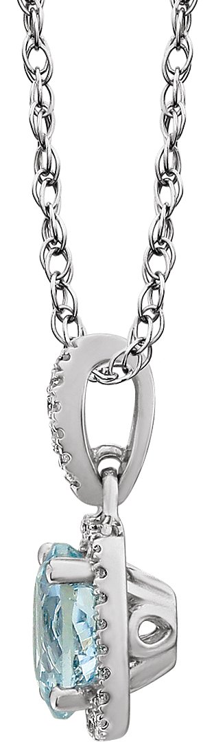 14K White Aquamarine & 1/8 CTW Diamond 18 inch Necklace