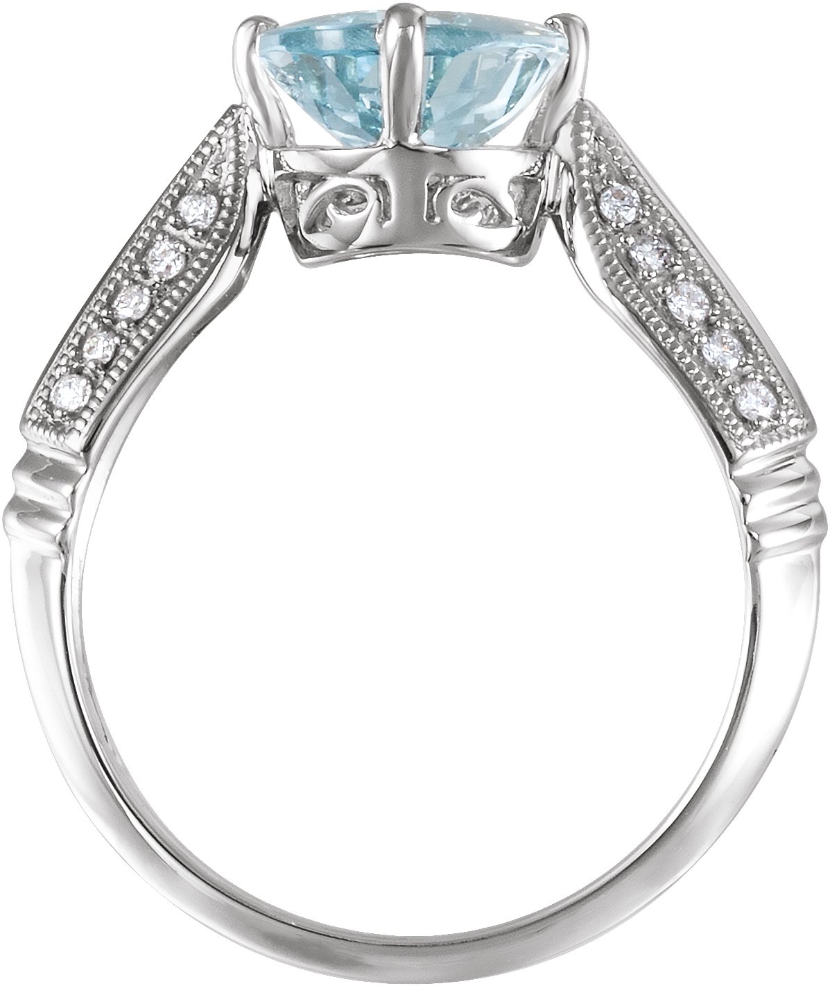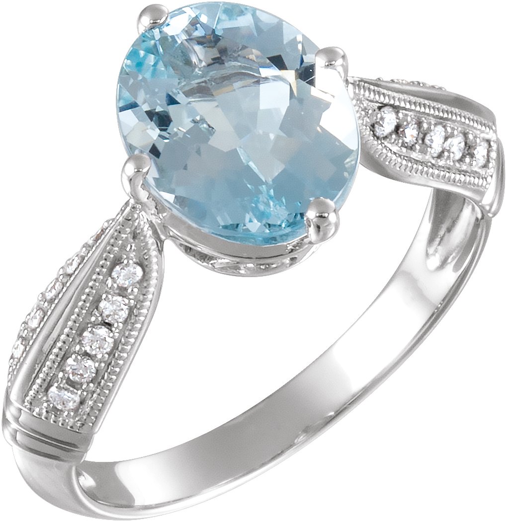 Description: Genuine Aquamarine And 1/8 Ctw Diamond Ring