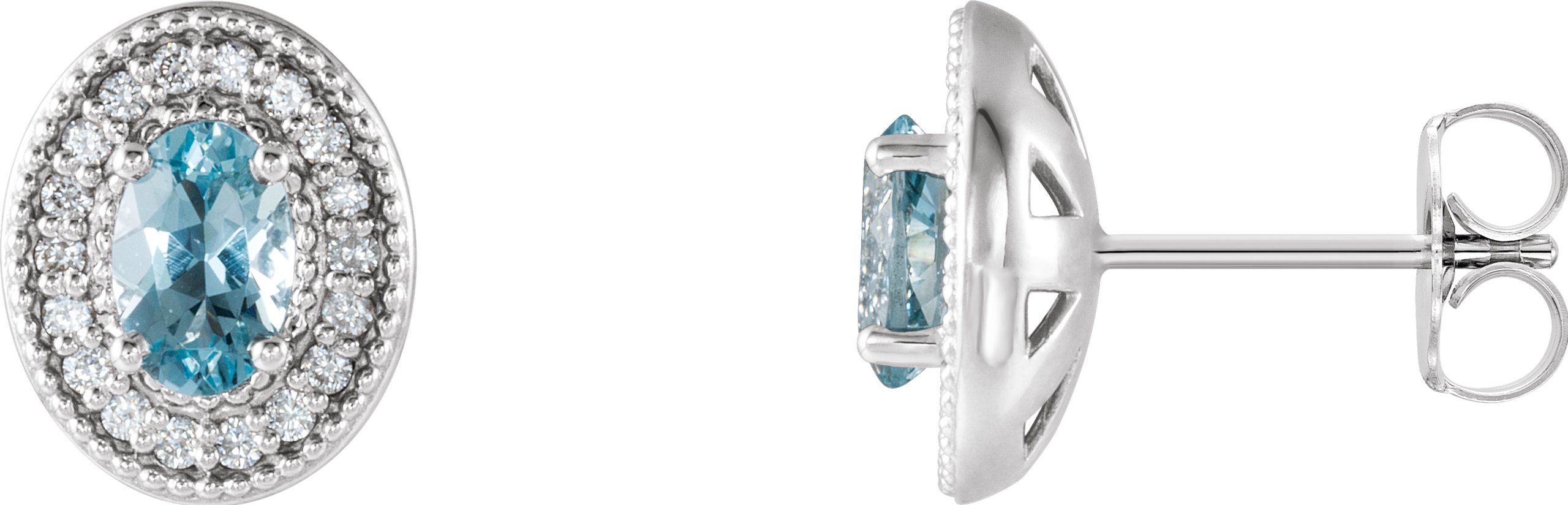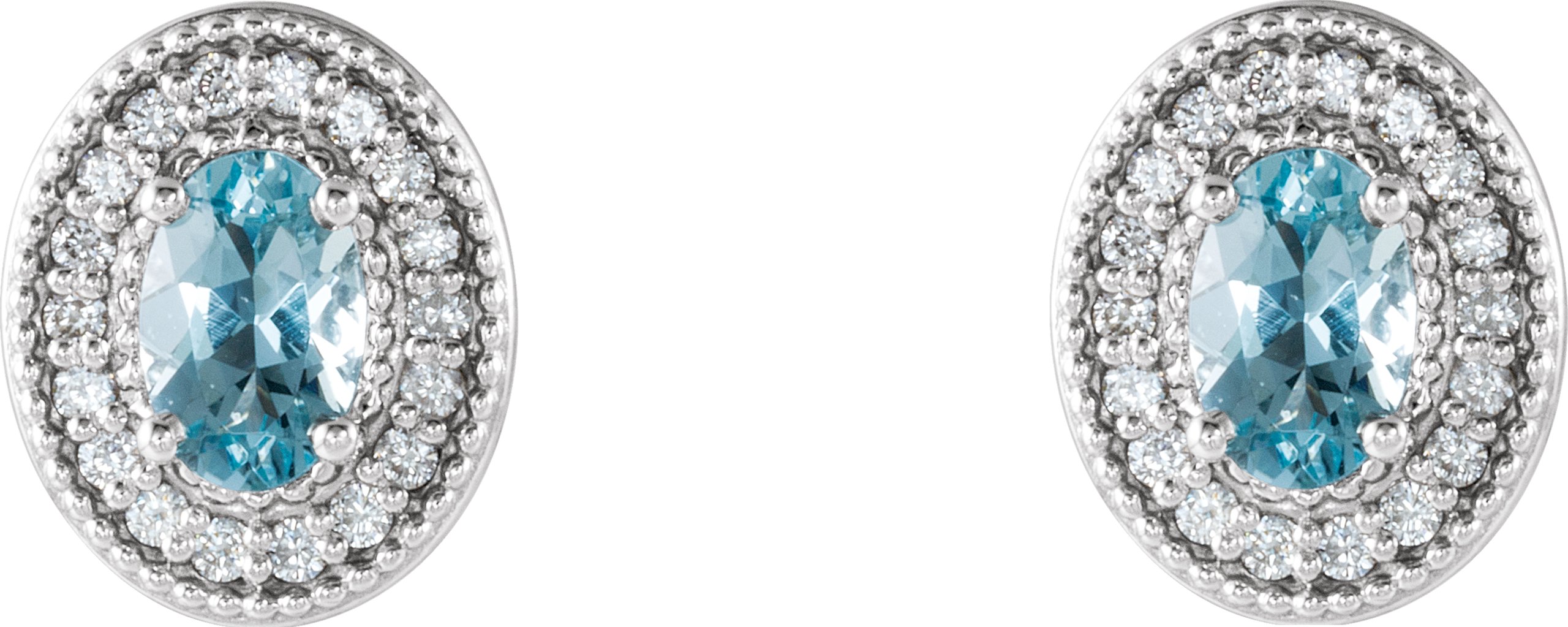 14K White Aquamarine & 1/5 CTW Diamond Halo Style Earrings