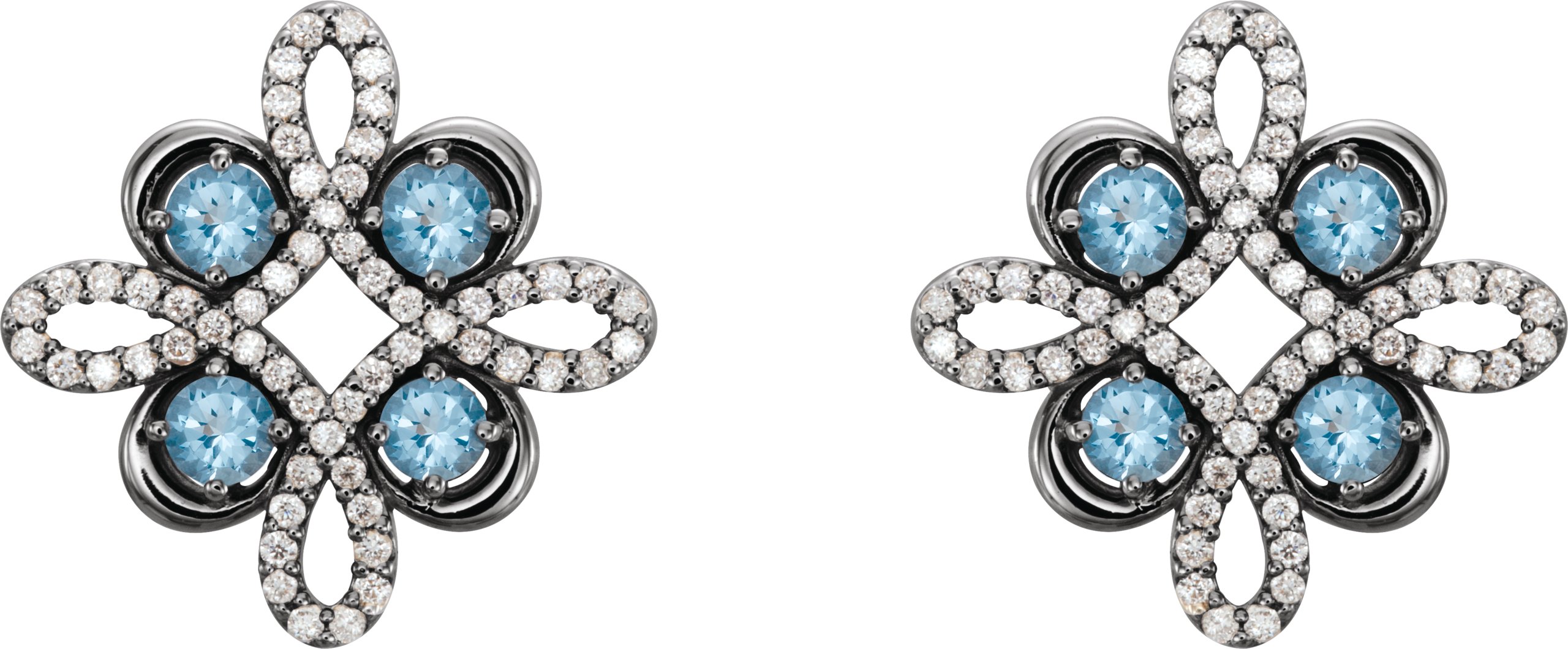 14K White Aquamarine and .25 CTW Diamond Earrings