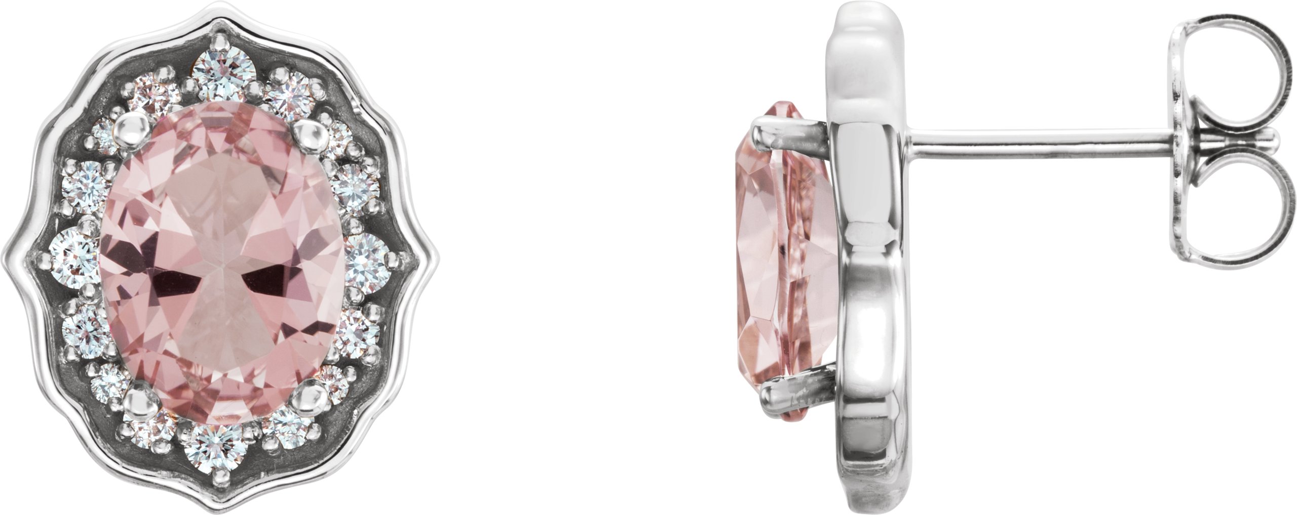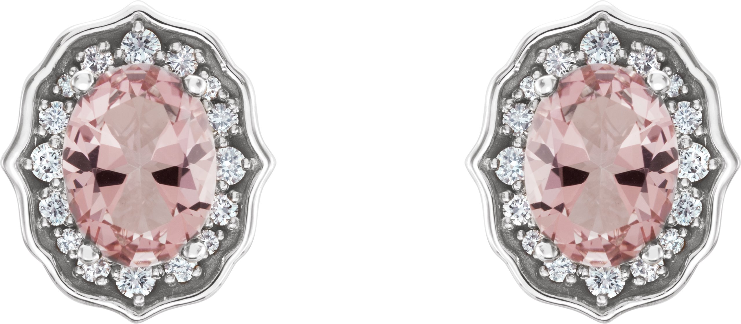 14K White Baby Pink Topaz and 1/3 CTW Diamond Earrings with Backs