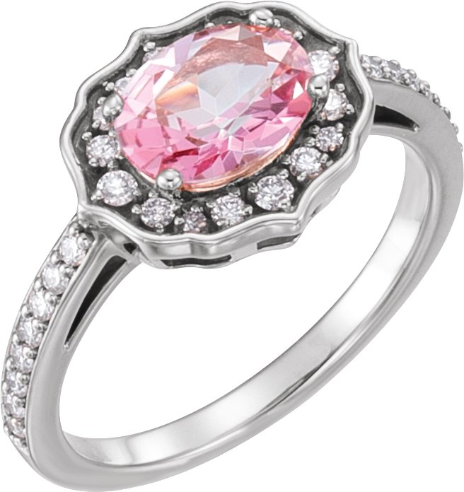 14K White Baby Pink Topaz & 1/3 CTW Diamond Ring