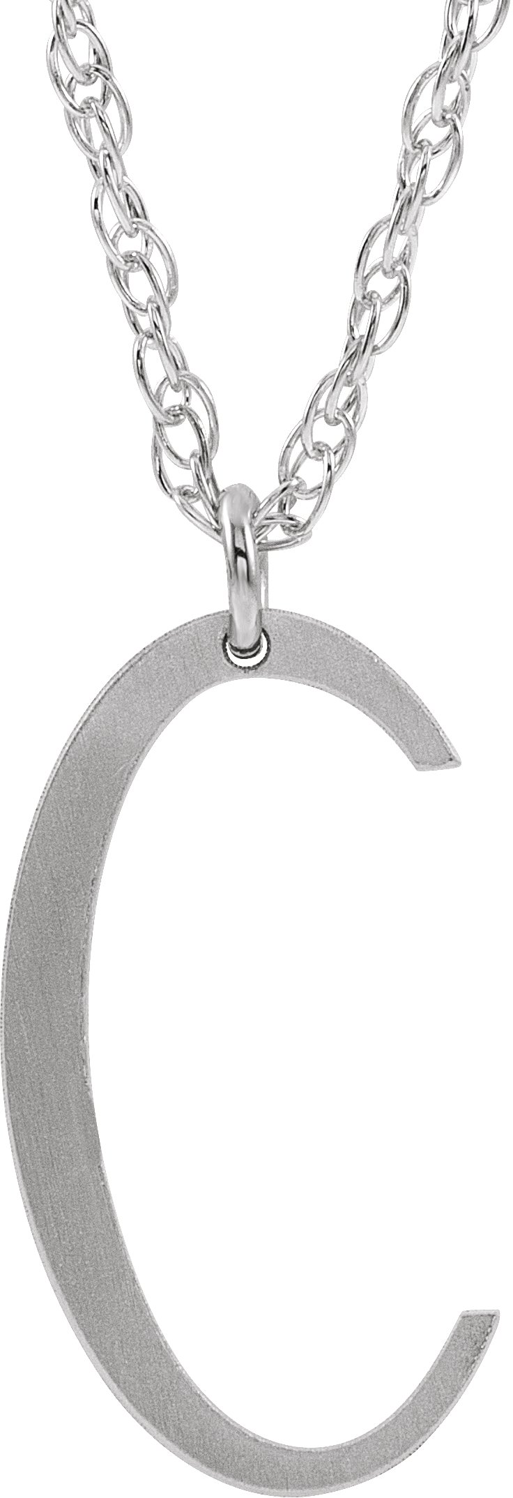 14K White Block Initial C 16 18" Necklace with Brush Finish Ref. 16047360