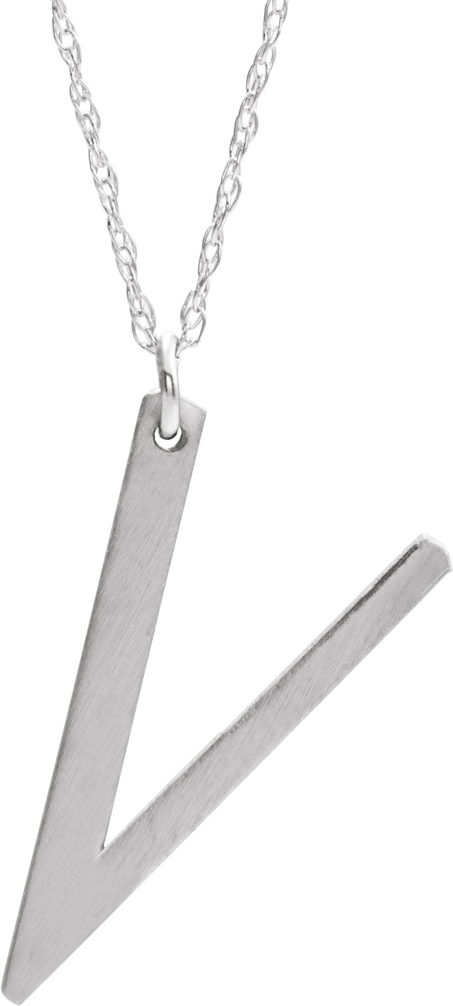 14K White Block Initial V 16 18" Necklace with Brush Finish Ref. 16047379