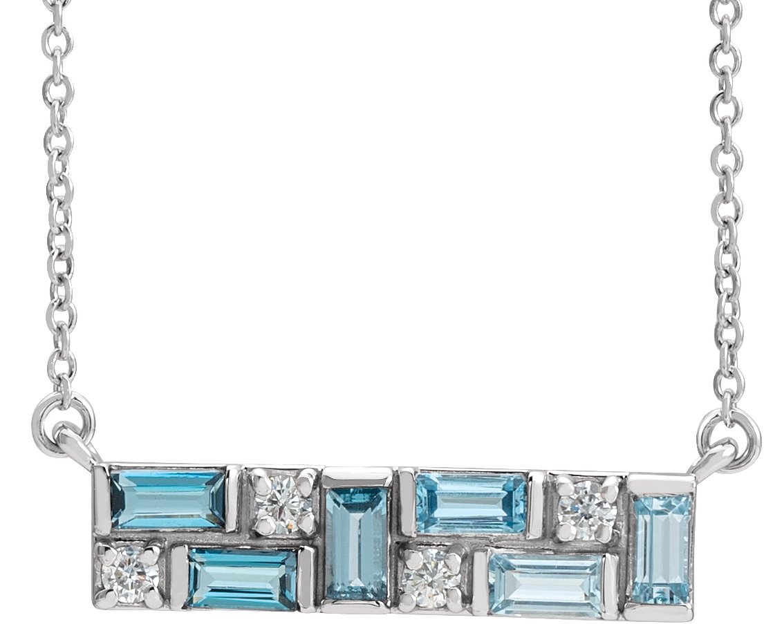 14K White Blue Multi Gemstone & 1/8 CTW Diamond Bar 18 inch Necklace