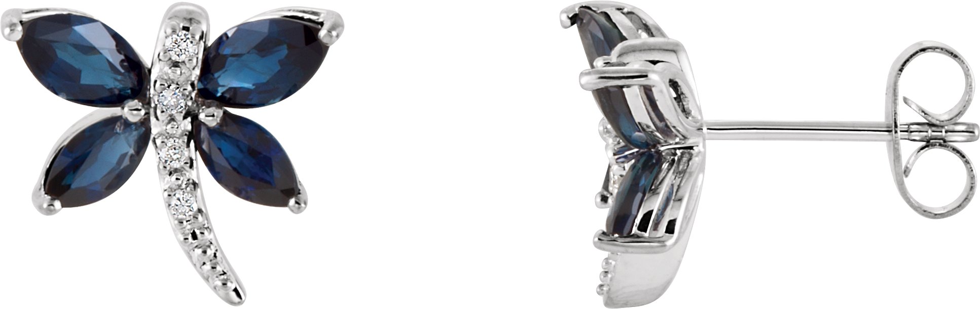 14K White Blue Sapphire & .04 CTW Diamond Earrings