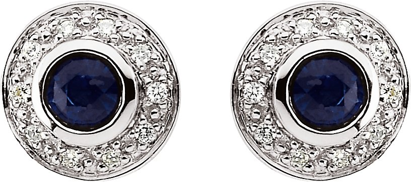 14K White Blue Sapphire & 1/10 CTW Diamond Earrings