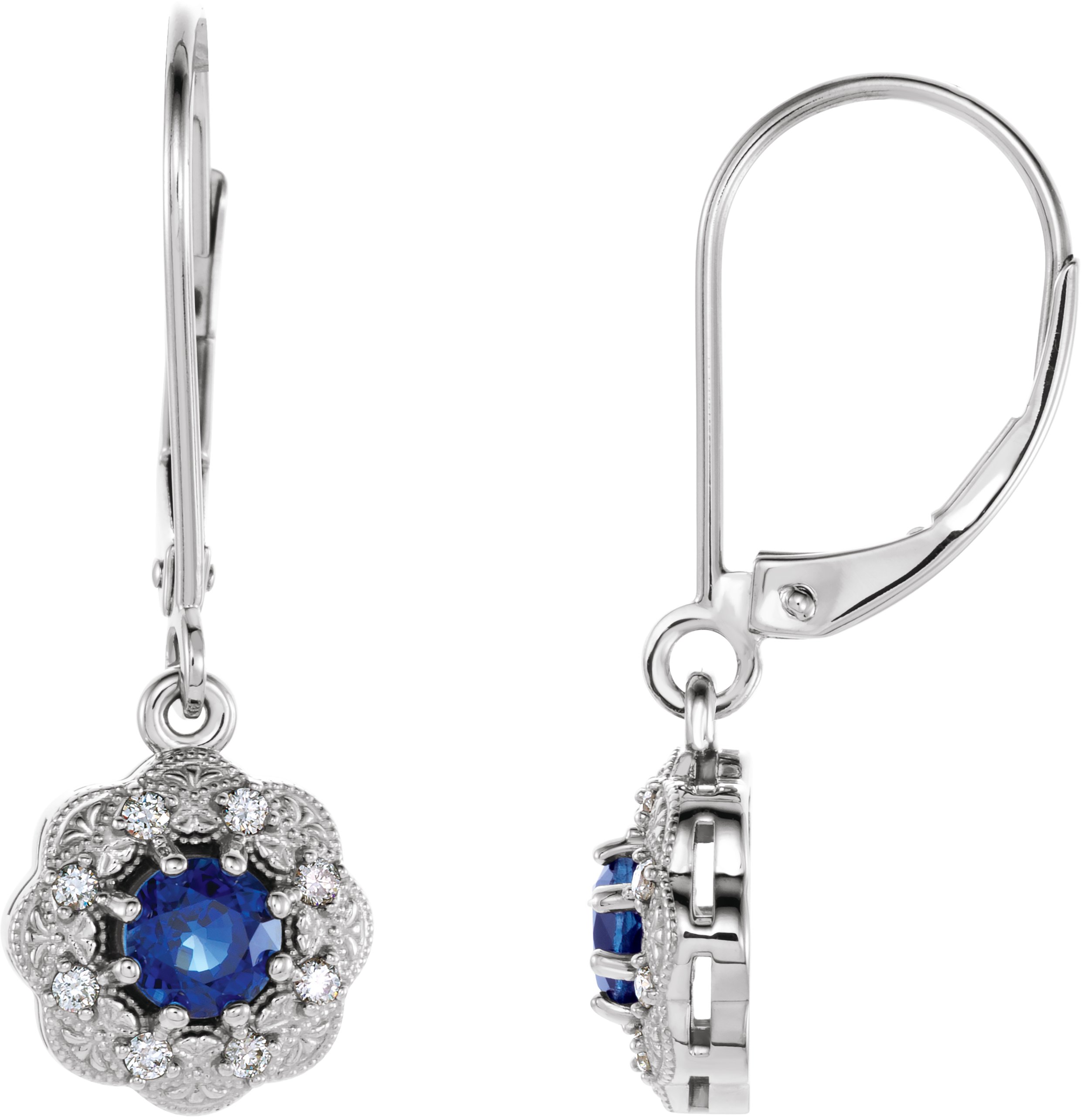Description: Genuine Blue Sapphire And 1/10 Ctw Diamond Earrings