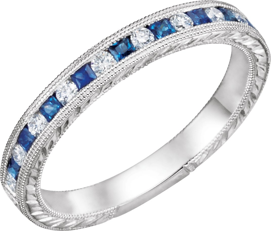 14K White Blue Sapphire and .25 CTW Diamond Anniversary Band Ref 13394381