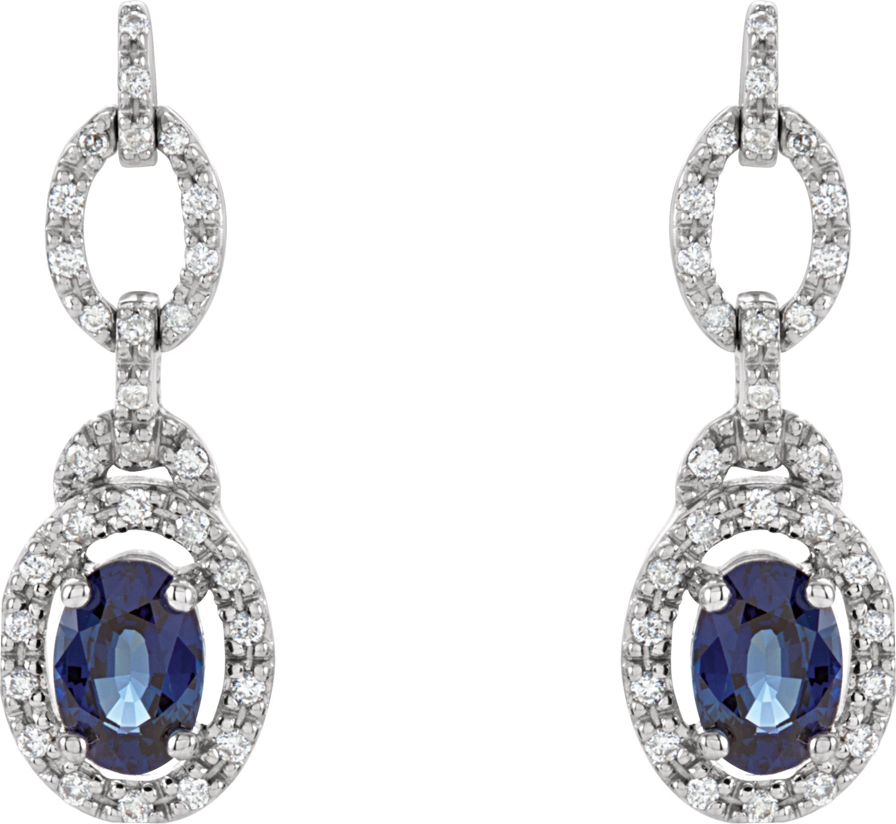 14K White Blue Sapphire & 1/4 CTW Diamond Earrings