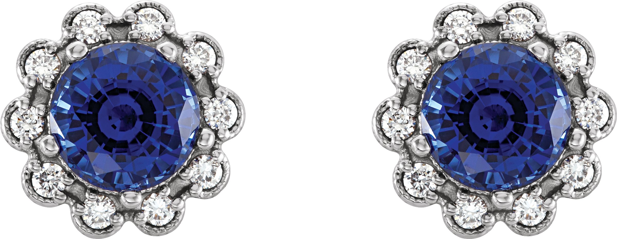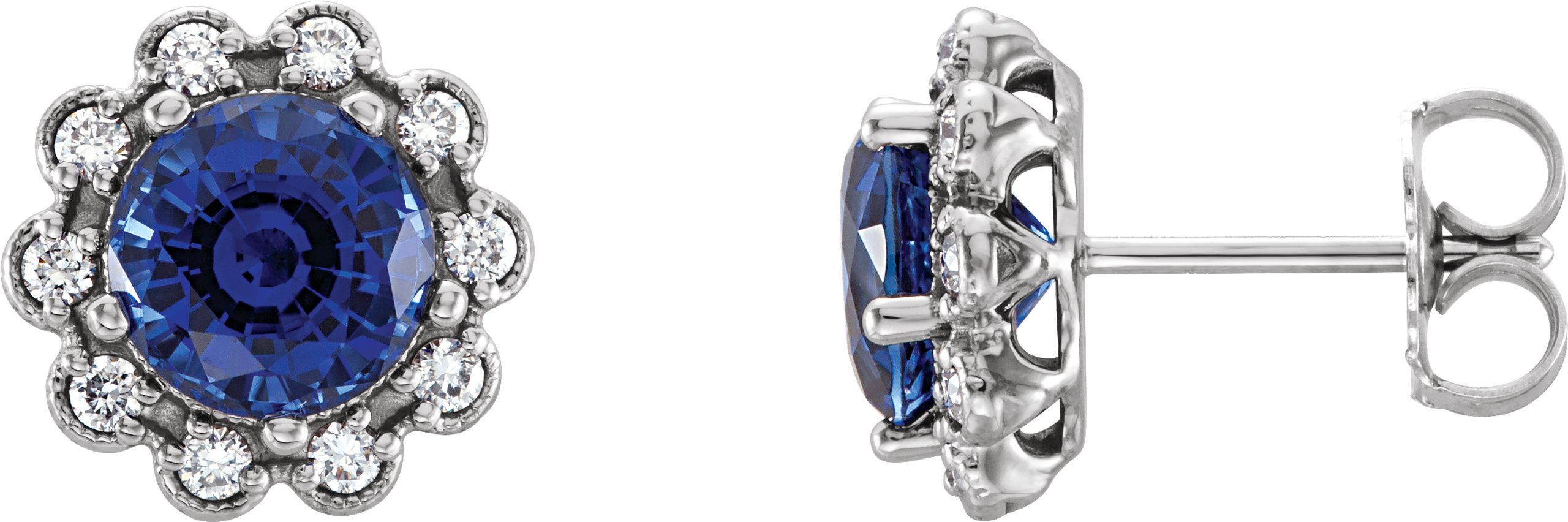 Description: Chatham Created Blue Sapphire And 1/3 Ctw Diamond Earrings