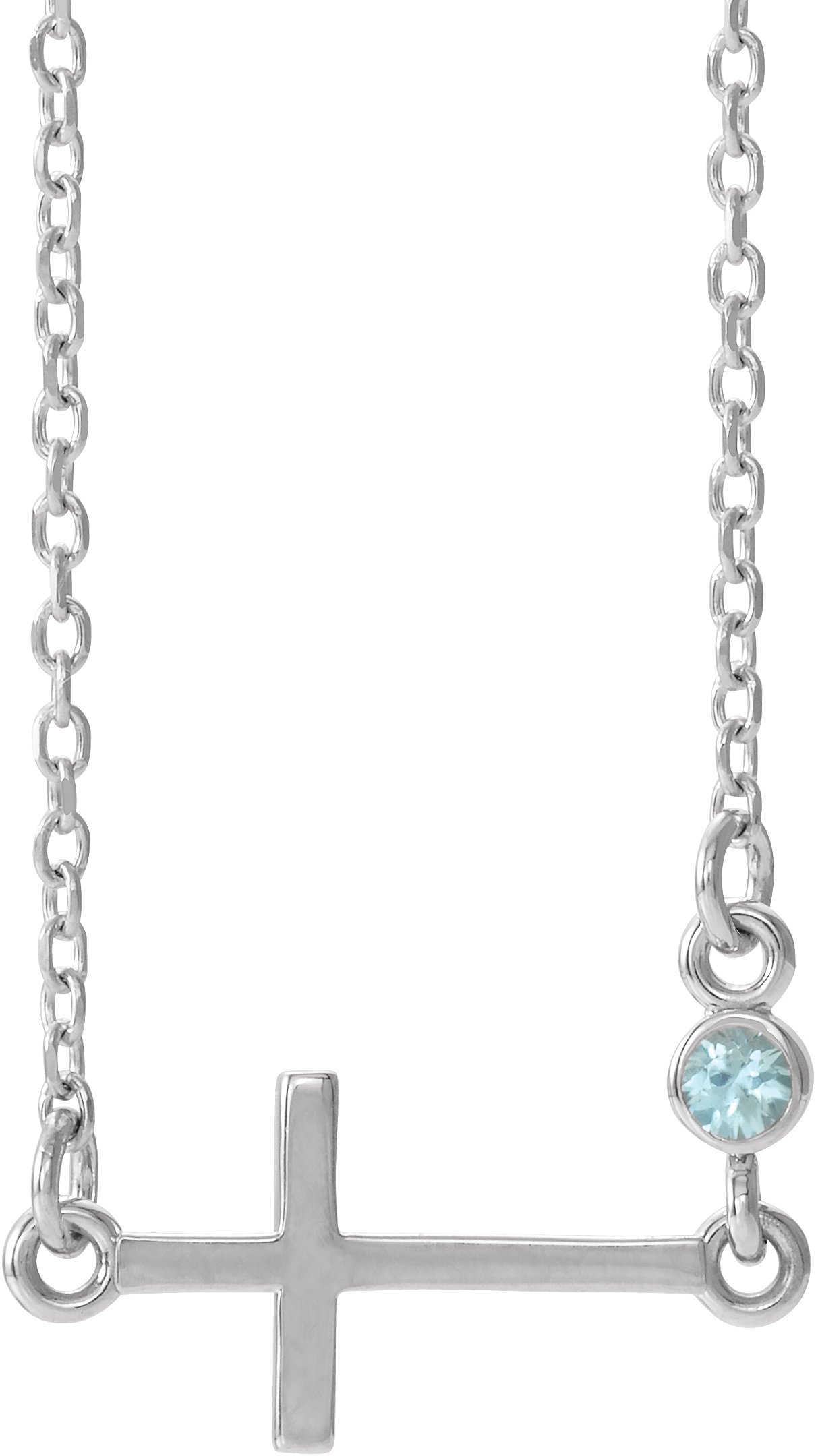 14K White Blue Zircon Sideways Accented Cross 16 18" Necklace Ref. 13269696