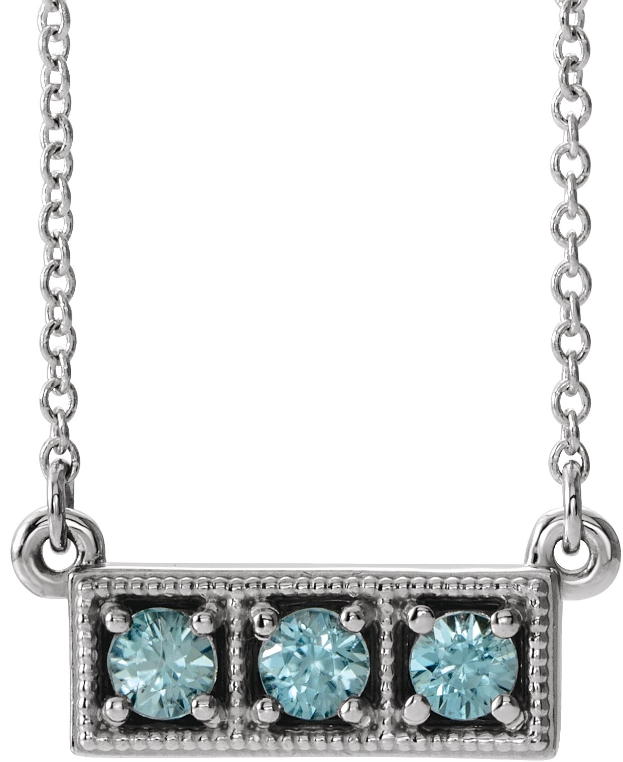 14K White Blue Zircon Three Stone Granulated Bar 16 18" Necklace Ref. 14204280