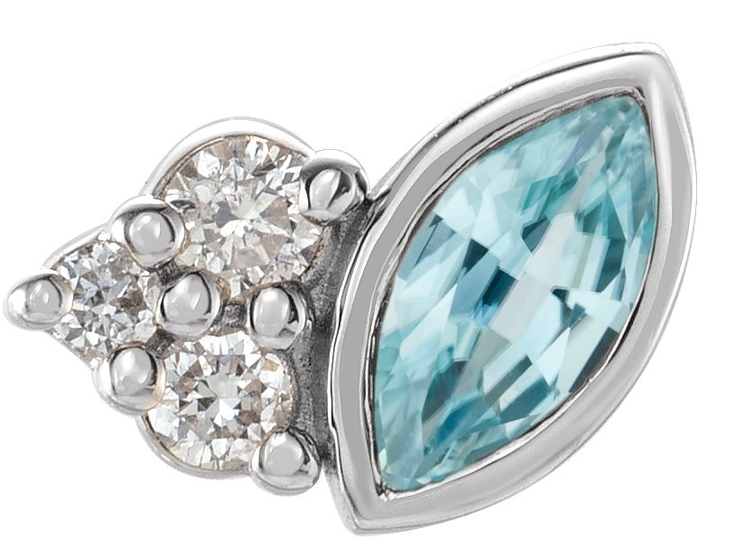 14K White Blue Zircon and .03 CTW Diamond Right Earring