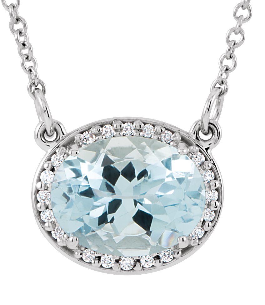 14K White Blue Zircon & .05 CTW Diamond 16.5 inch Necklace