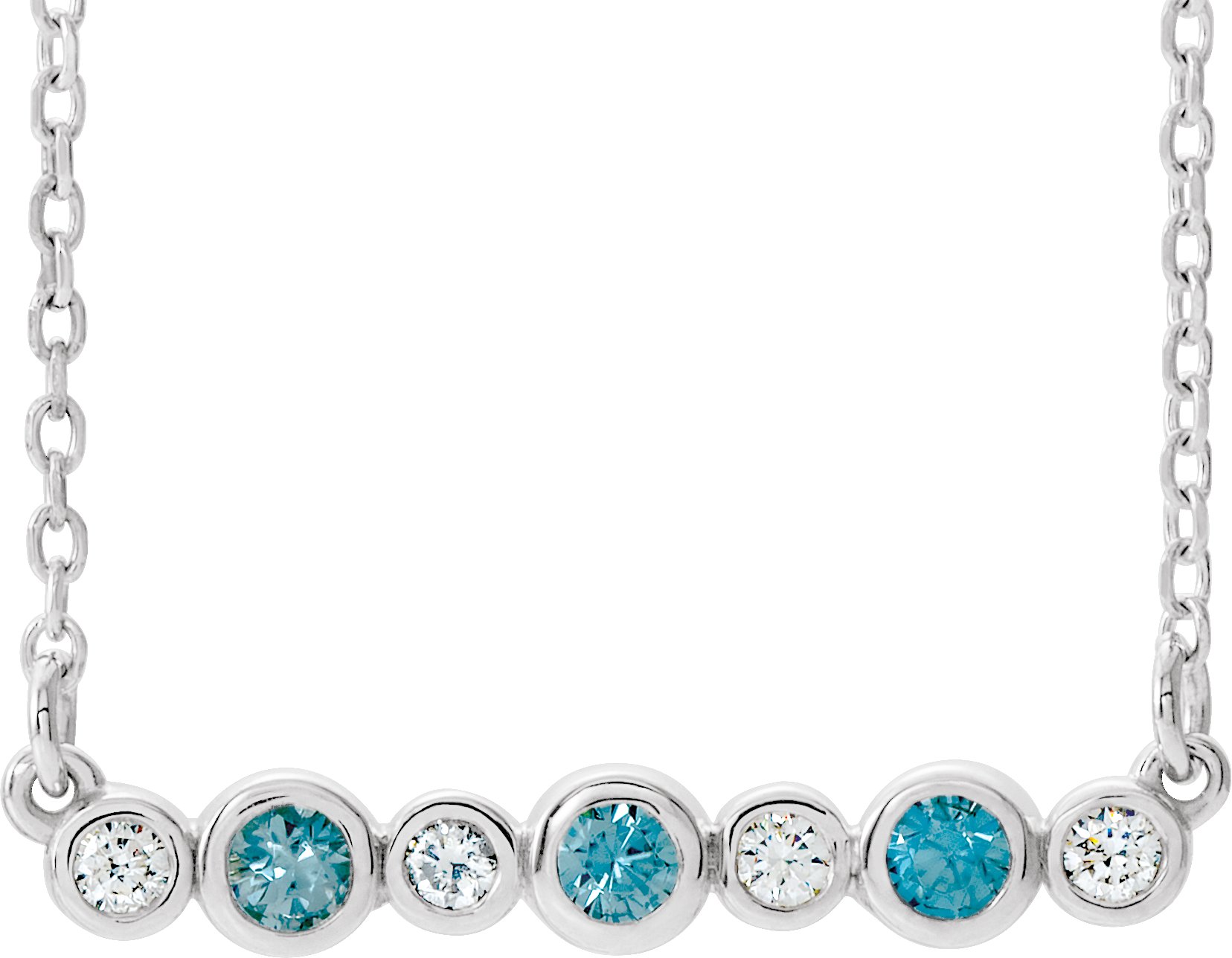 14K White Blue Zircon & .08 CTW Diamond Bezel Set Bar 16 18" Necklace Ref. 14204961