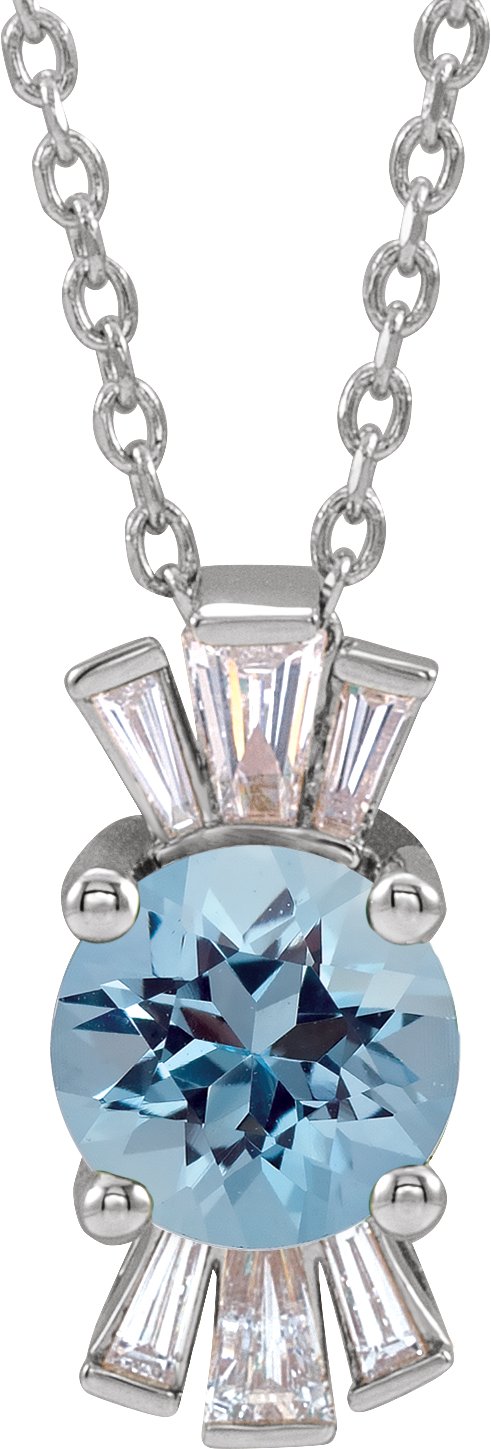 14K White Blue Zircon & 1/6 CTW Diamond 16 18 inch Necklace