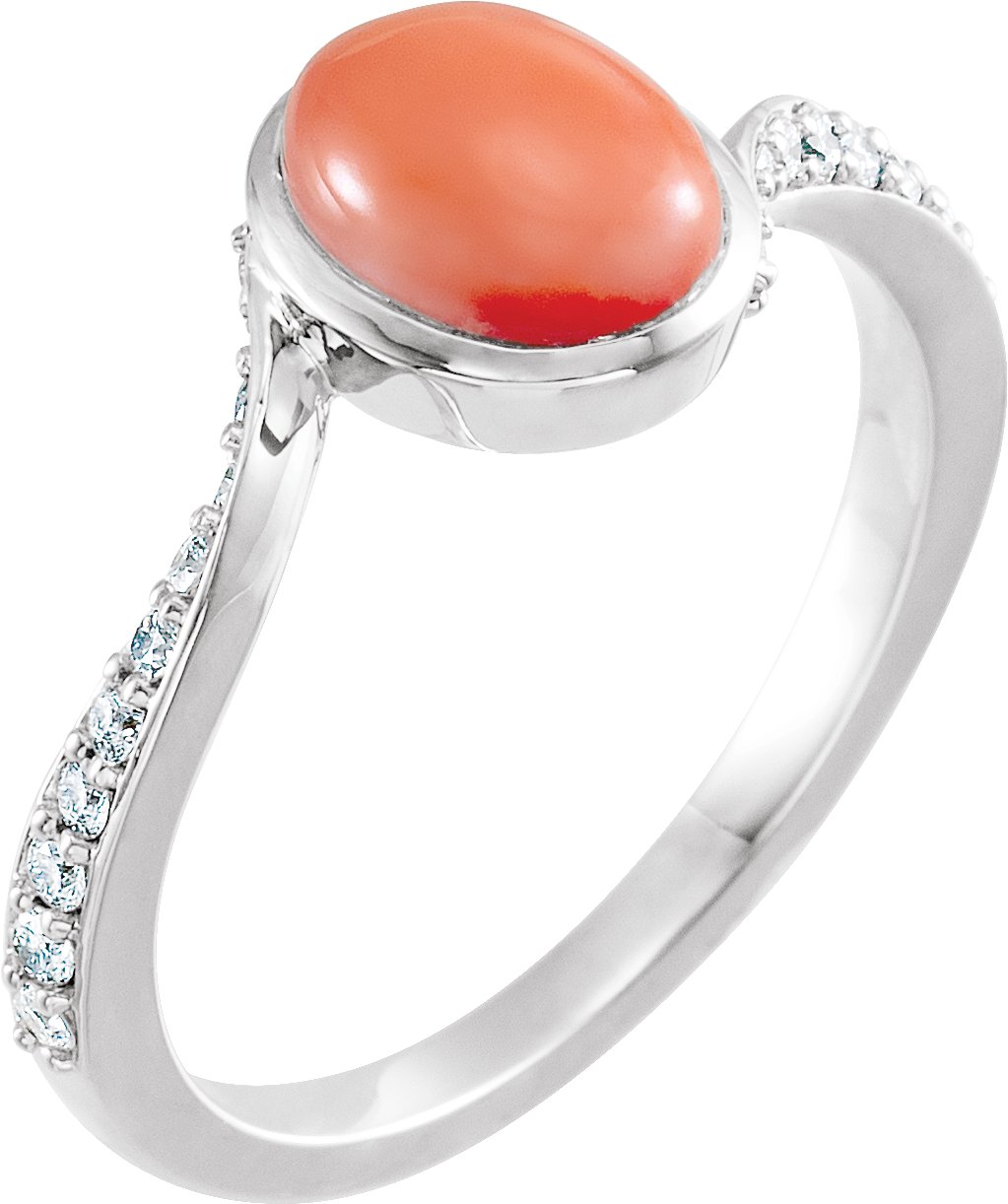 14K White Cabochon Pink Coral & 1/5 CTW Diamond Ring