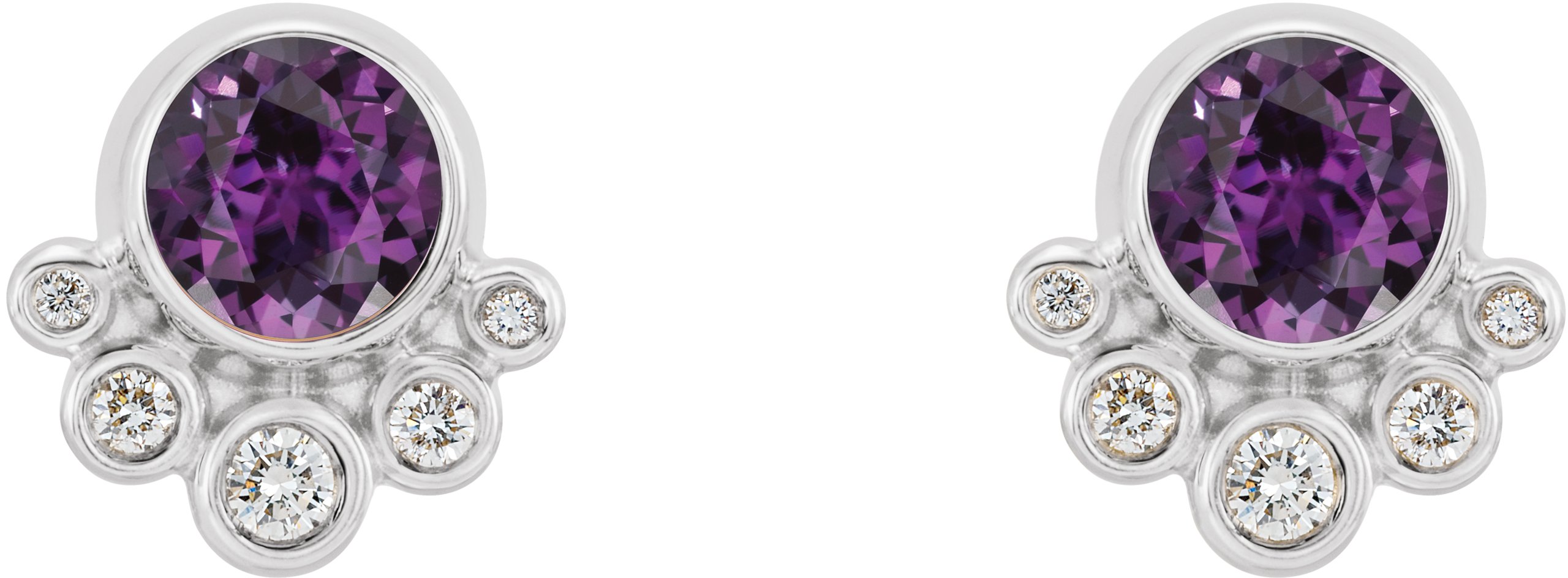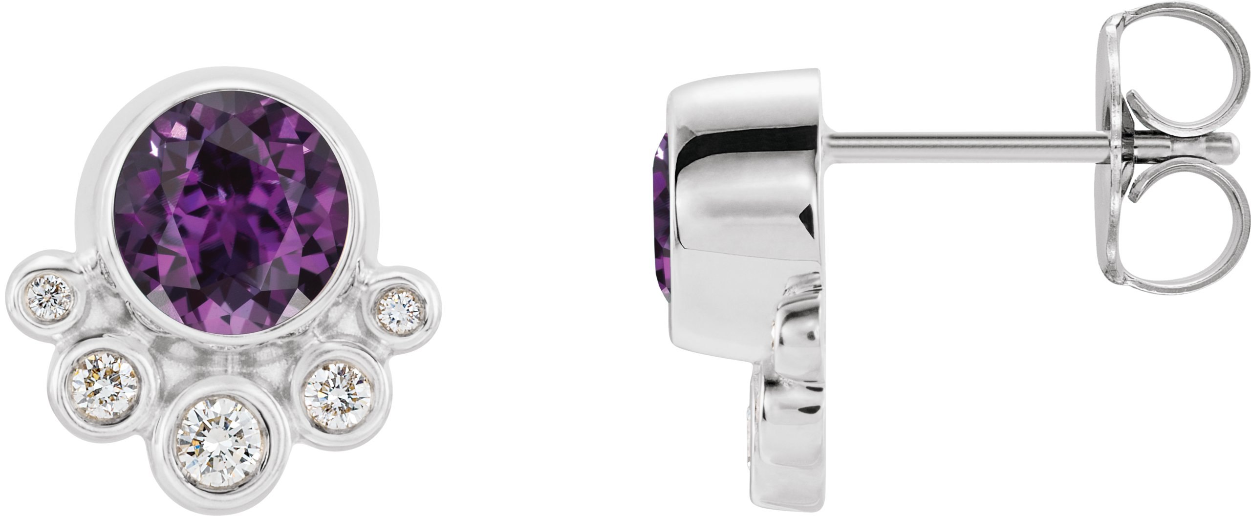 14K White Chatham Created Alexandrite & 1/8 CTW Diamond Earrings