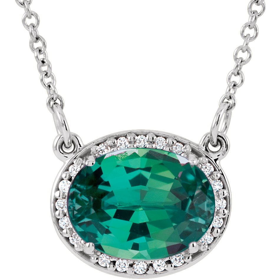14K White Chatham Created Emerald & .05 CTW Diamond 16.5 inch Necklace