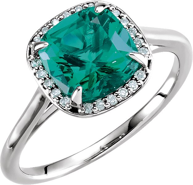 Description: Chatham Created Emerald And .055 Ctw Diamond Ring