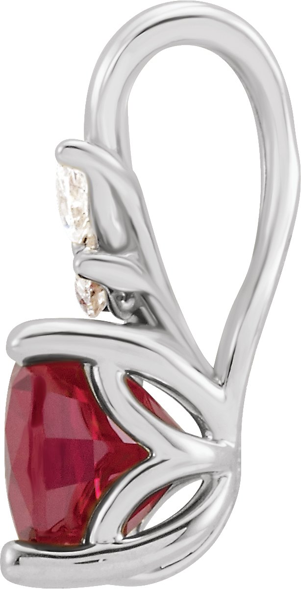 14K White Chatham Created Ruby & 1/10 CTW Diamond Pendant Ref. 14213393