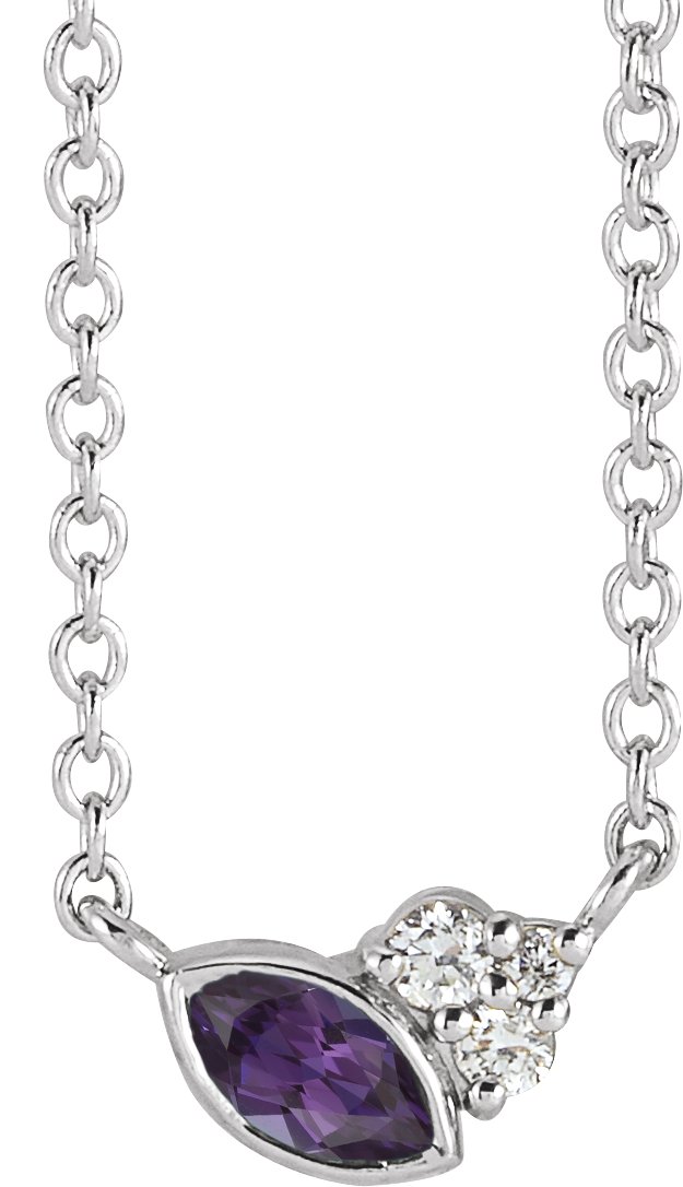 14K White Chatham Lab Created Alexandrite & .03 CTW Diamond 16 inch Necklace