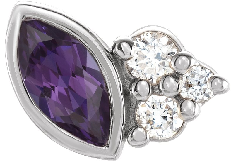 14K White Chatham Lab Created Alexandrite and .03 CTW Diamond Left Earring