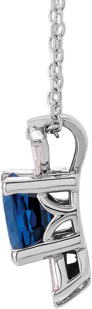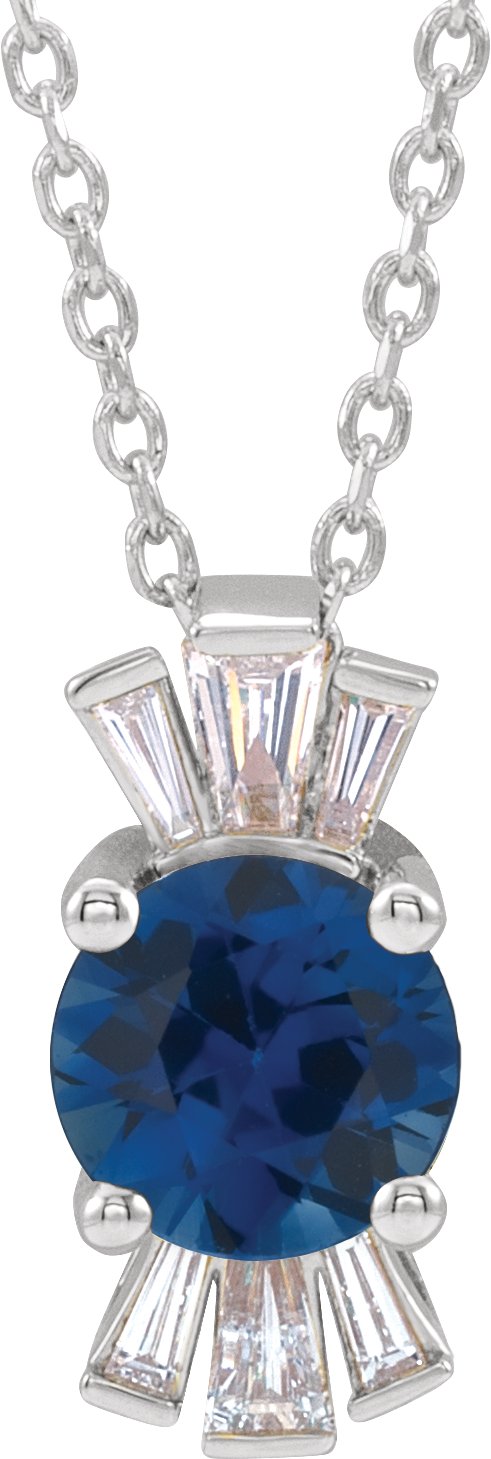 14K White Chatham Lab Created Blue Sapphire & 1/6 CTW Diamond 16 18 inch Necklace