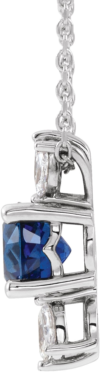 14K White Chatham Lab Created Blue Sapphire & 1/4 CTW Diamond 16 18 inch Necklace