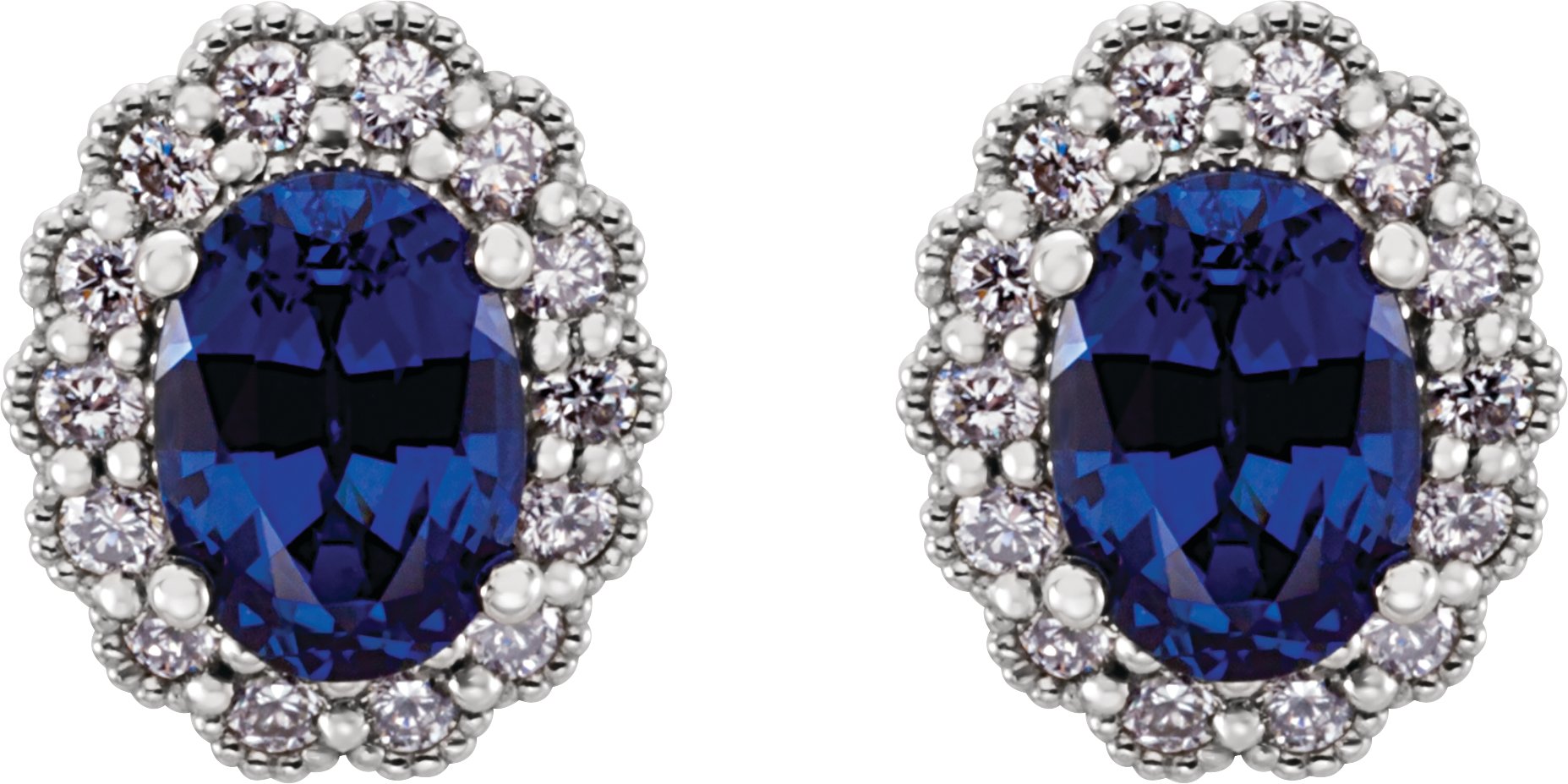 Description: Chatham Created Blue Sapphire And 1/3 CTW Diamond Earrings