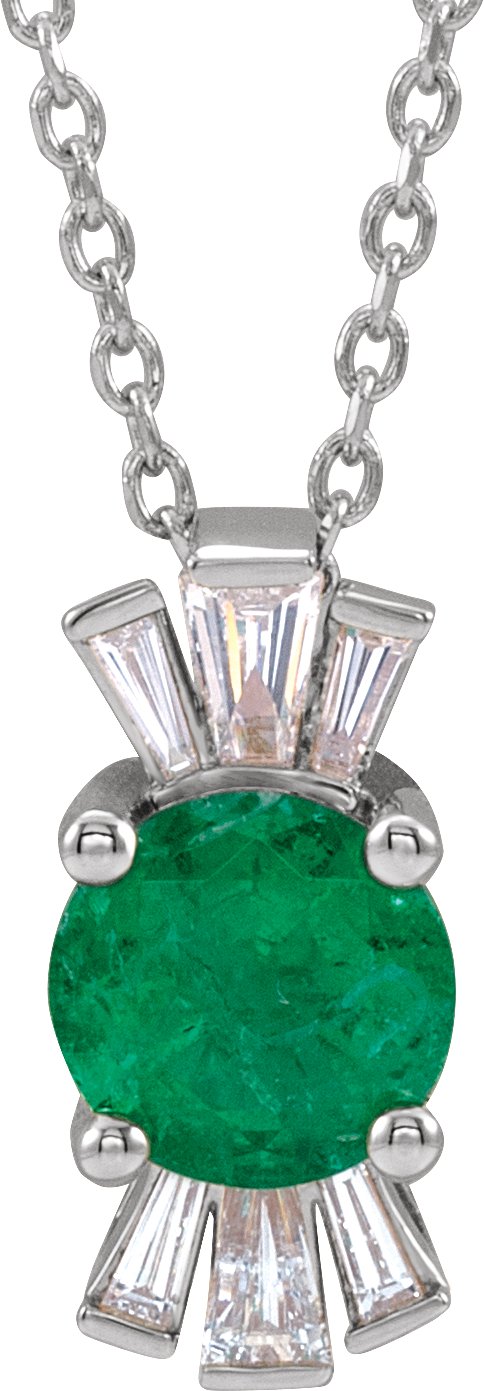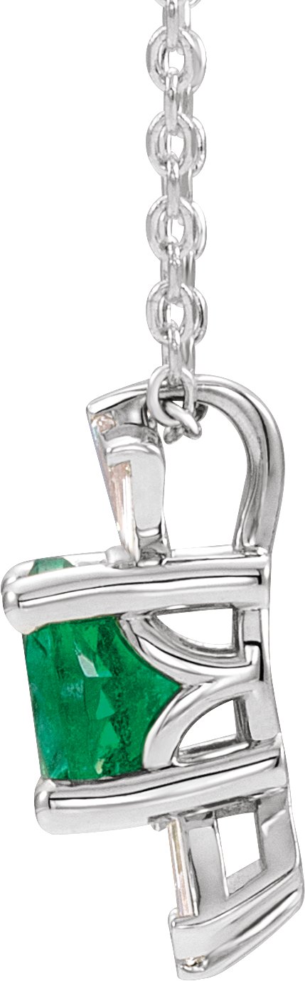 14K White Chatham Lab Created Emerald & 1/6 CTW Diamond 16 18 inch Necklace