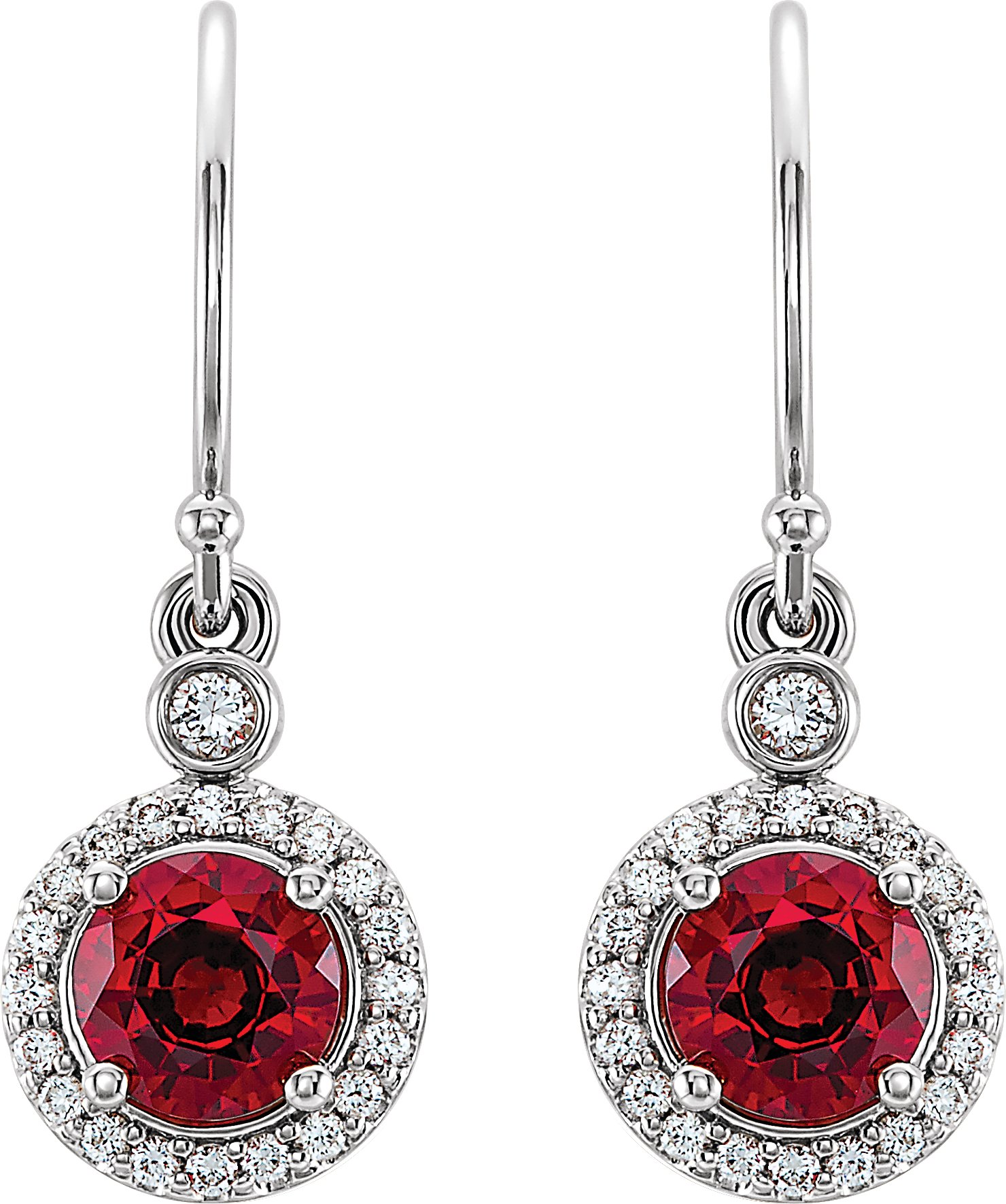 14K White Chatham Lab Grown Ruby & 1/6 CTW Diamond Halo Style Earrings