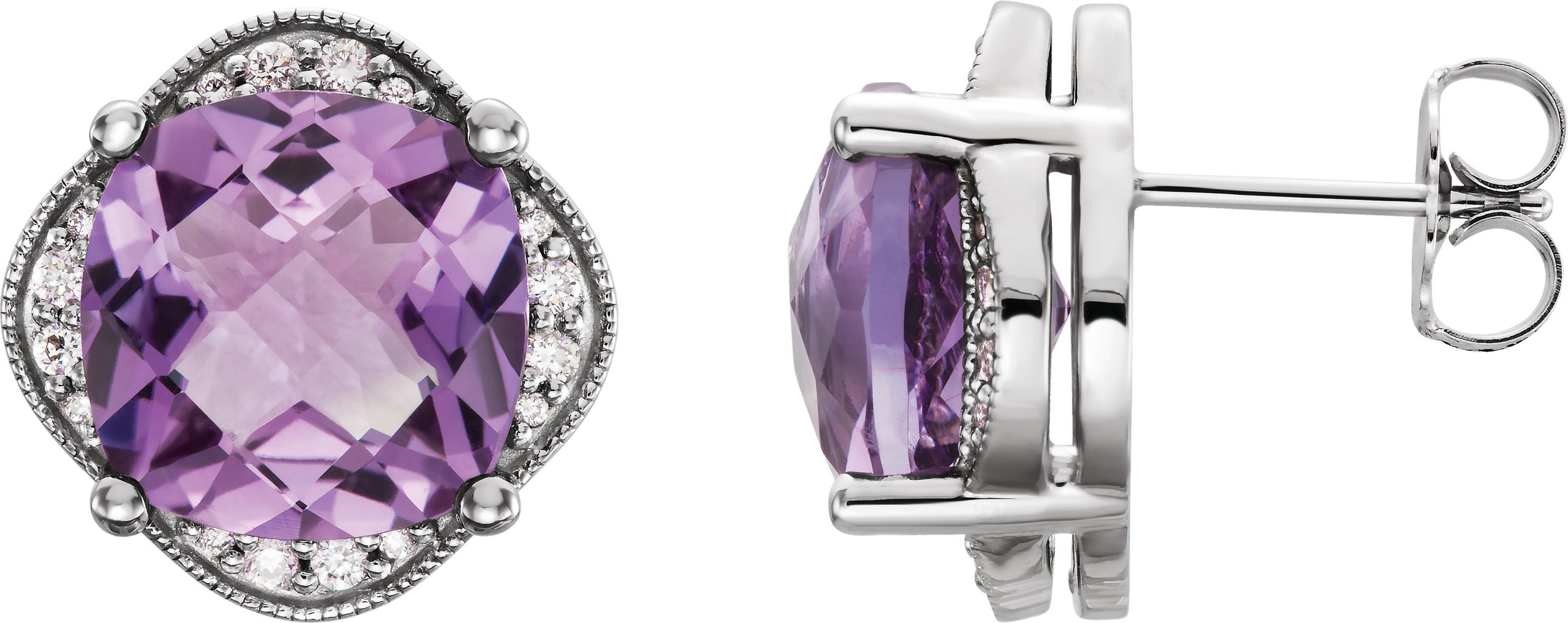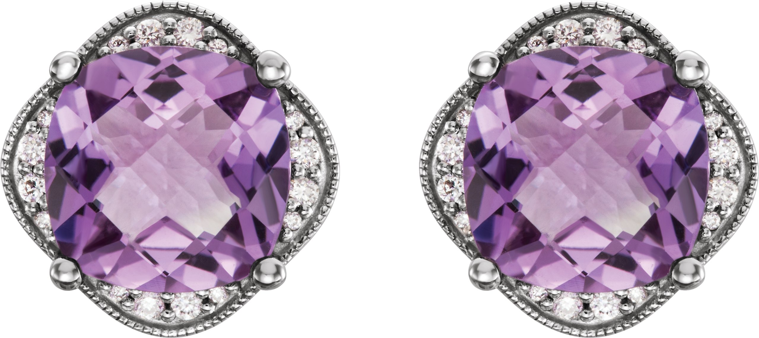 Description: Checkerboard Amethyst And 1/5 Ctw Diamond Earrings With Backs