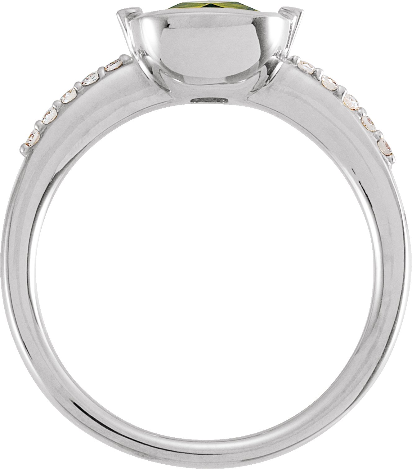 Description: Genuine Checkerboard Peridot And 1/10 Ctw Diamond Ring