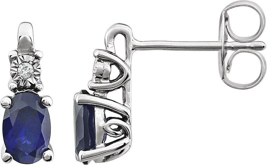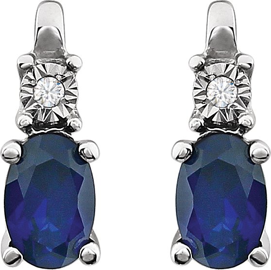Description: Created Blue Sapphire And .02Ctw Diamond Earrings With Backs