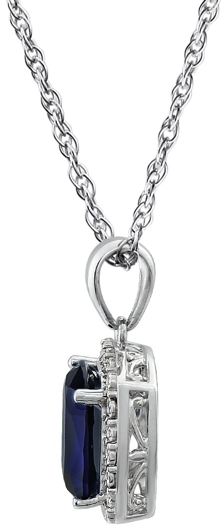 Description: Blue Sapphire And .05 Ctw Diamond Necklace